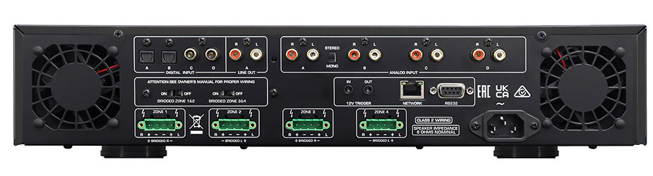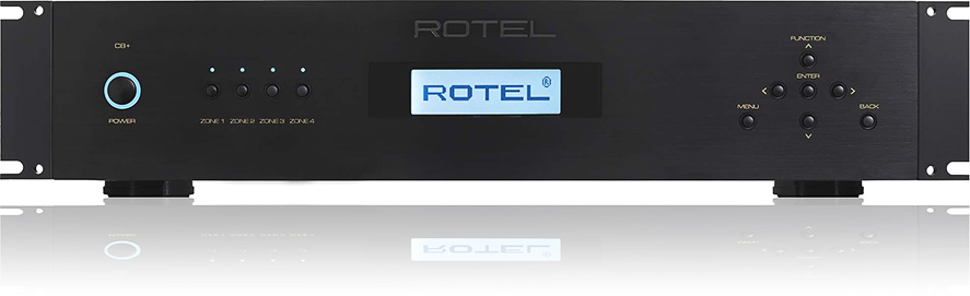 Le Rotel C8+ dispose de 4 entrées analogiques RCA accessibles dans toutes les zones grâce à un système de commutation matricielle interne. Il comporte également 2 entrées numériques optiques et 2 entrées coaxiales prenant en charge les flux audio 24 bits/192 kHz. L’intégration du dispositif de contrôle peut s’effectuer via le port Ethernet et/ou la connexion RS-232. De plus, l’entrée de commande 12 volts Trigger facilite la gestion de l’alimentation électrique.