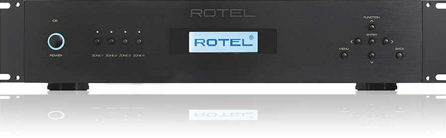 Le Rotel C8 comprend 4 entrées analogiques stéréo RCA matricées vers toutes les zones. Quant aux dimensions, la hauteur sur mesure de 2U ne nécessite aucun dégagement supérieur ou inférieur lors du montage en rack.