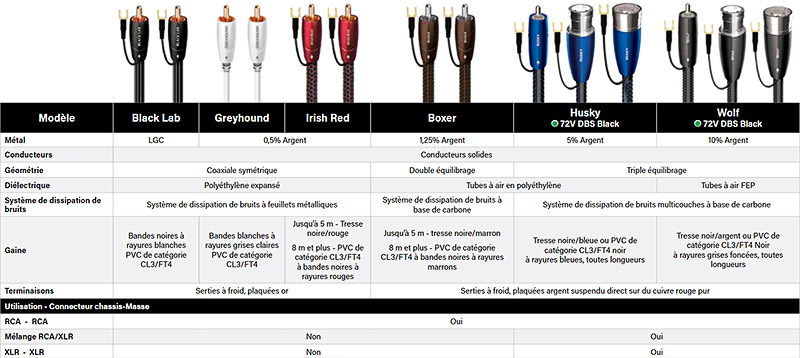 Tableau comparatif des câbles pour caissons de basses AudioQuest