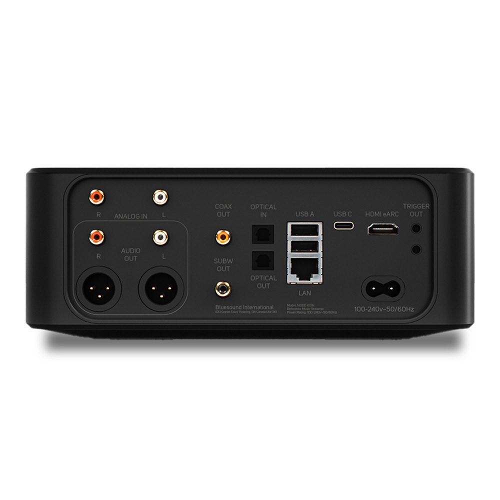 Doté de connectivités sans fil Bluetooth aptX Adaptive et Wi-Fi 5, le Bluesound NODE ICON propose également le contrôle multiroom via BluOS et la compatibilité AirPlay 2. Avec des options de connectivité variées, comme les sorties analogiques XLR et RCA, l’entrée HDMI eARC, ainsi que plusieurs ports USB, le NODE ICON s’adapte aisément à différentes configurations.