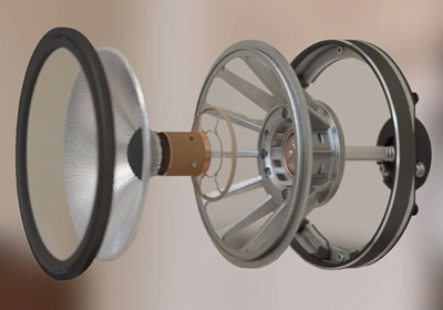 Il offre une amélioration par rapport au tweeter à double dôme en aluminium plus lourd, leur seuil de résonance se situe désormais à 47 kHz. Il participe au développement d’une image sonore ouverte et à la reproduction subtile des détails.