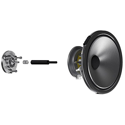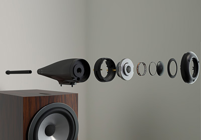 Le tweeter à dôme en carbone conçus pour la série 700 offre une amélioration audible par rapport au tweeter à double dôme en aluminium. Il élève le seuil de rupture à 47 kHz, ce qui a pour but d’accroître la précisions et l’aération.