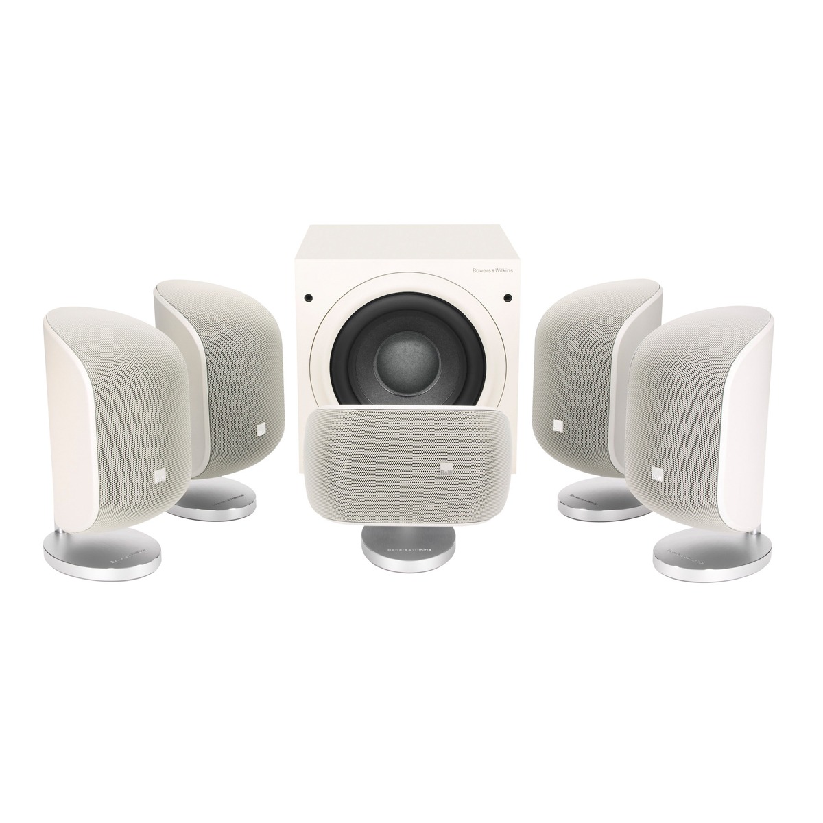 Bowers & Wilkins MT50 pack 5.1 comprend 5x enceintes B&W M-1 MKII + 1x caisson de grave B&W ASW608. Idéal pour une installation home-cinéma compacte mais musclée !
