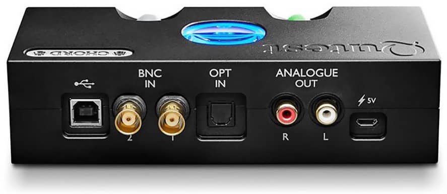 Conçu pour upgrader une large palette d’appareils, ce DAC propose une connectique très complète pour différents usages. Son entrée USB-B avec isolation galvanique lui permet donc de lire les fichiers PCM jusqu’à 32 bits/768 kHz et DSD 512, ses entrées numériques coaxiales (BNC) les flux PCM jusqu’à 24 bits/384 kHz et DSD 128 et sonentrée optique Toslink les flux PCM jusqu’à 24 bits/192 kHz. Ces entrées offrent la possibilité d’augmenter les performances sonores de n’importe quel appareil et même de donner une seconde jeunesse aux matériels vieillissants ! On retrouve évidemment une paire de sorties RCA pour transmettre le signal converti à tous vos appareils analogiques, que cela soit l’amplificateur intégré, le préampli ou l’ampli casque de votre salon. Avec un taux de distorsion harmonique ne dépassant pas les 0,0001 %, le DAC Chord QuTest garantit une restitution sonore ultra fidèle.