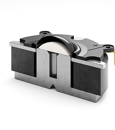 Le pôle magnétique de l’aimant des haut-parleur OBERON est couronnée par un disque SMC breveté qui réduit fortement les distorsions.