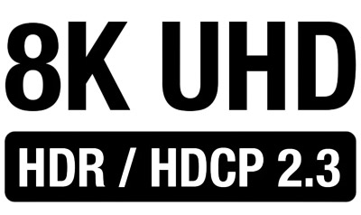 La connectique HDMI est compatible avec les flux Ultra HD 8K et 4K et les formats HDR Dolby Vision, HDR10+ et Hybrid Log Gamma, tout en garantissant une qualité d’image optimale grâce à la fonction de transmission vidéo directe. La norme HDMI CEC permet de contrôler tous les équipements avec une seule télécommande, tandis que la technologie eARC assure la prise en charge des flux audio DTS:X et Dolby Atmos via le câble HDMI.