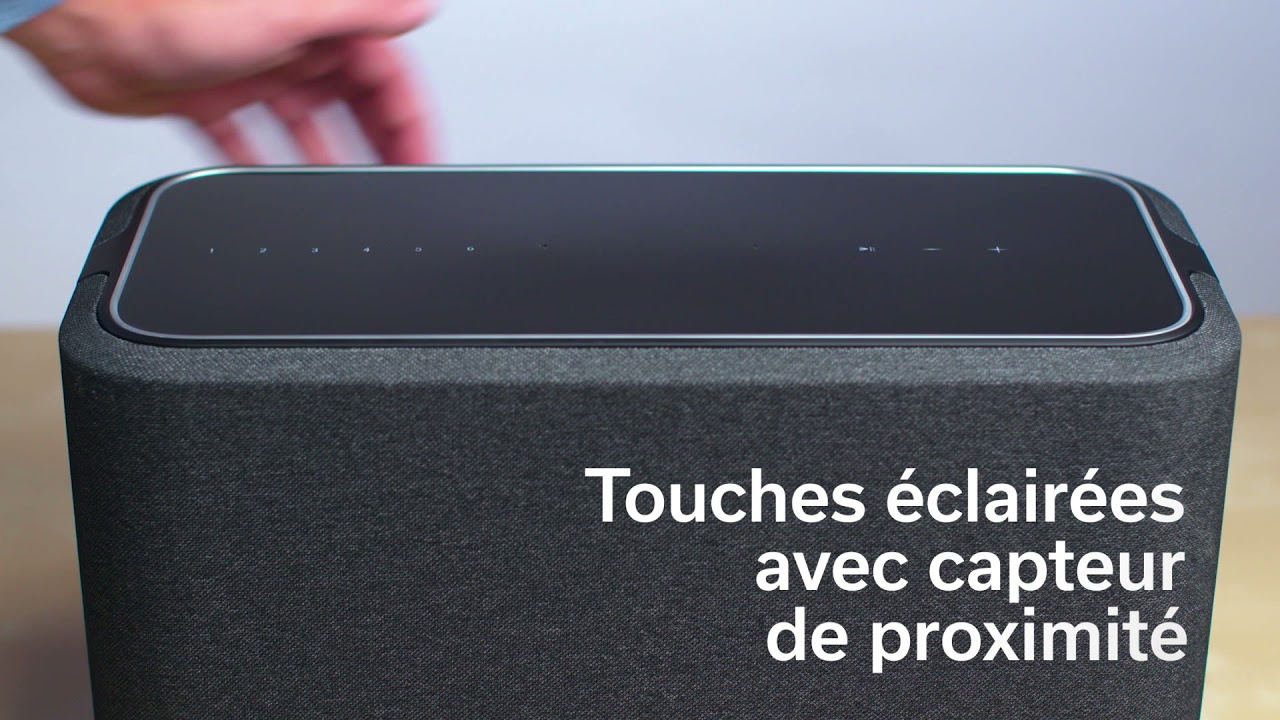 Sur le dessus de l’enceinte, une interface sensitive discrète facilite l’utilisation de la Denon Home 250. Un capteur de proximité illumine les touches lorsqu’une main s’approche, permettant d’ajuster le volume, mettre en pause ou choisir des services prédéfinis.