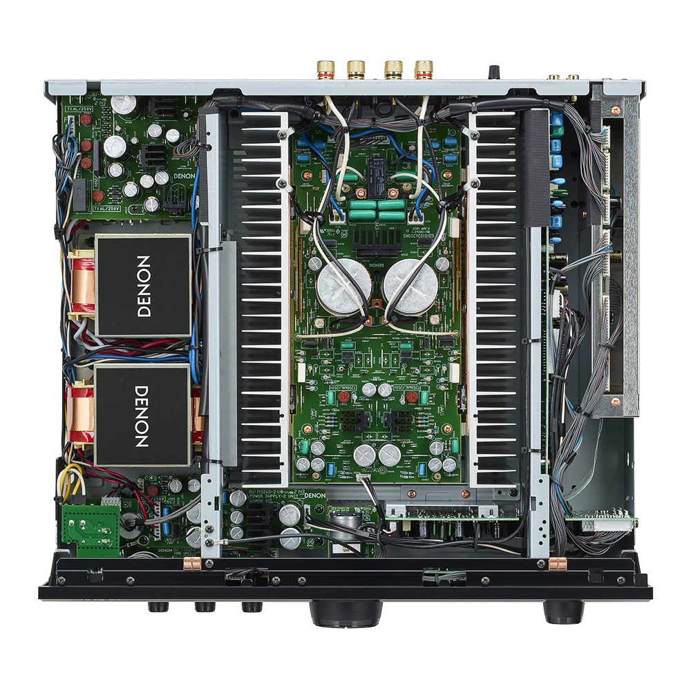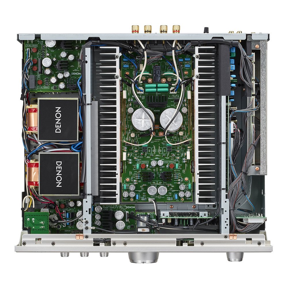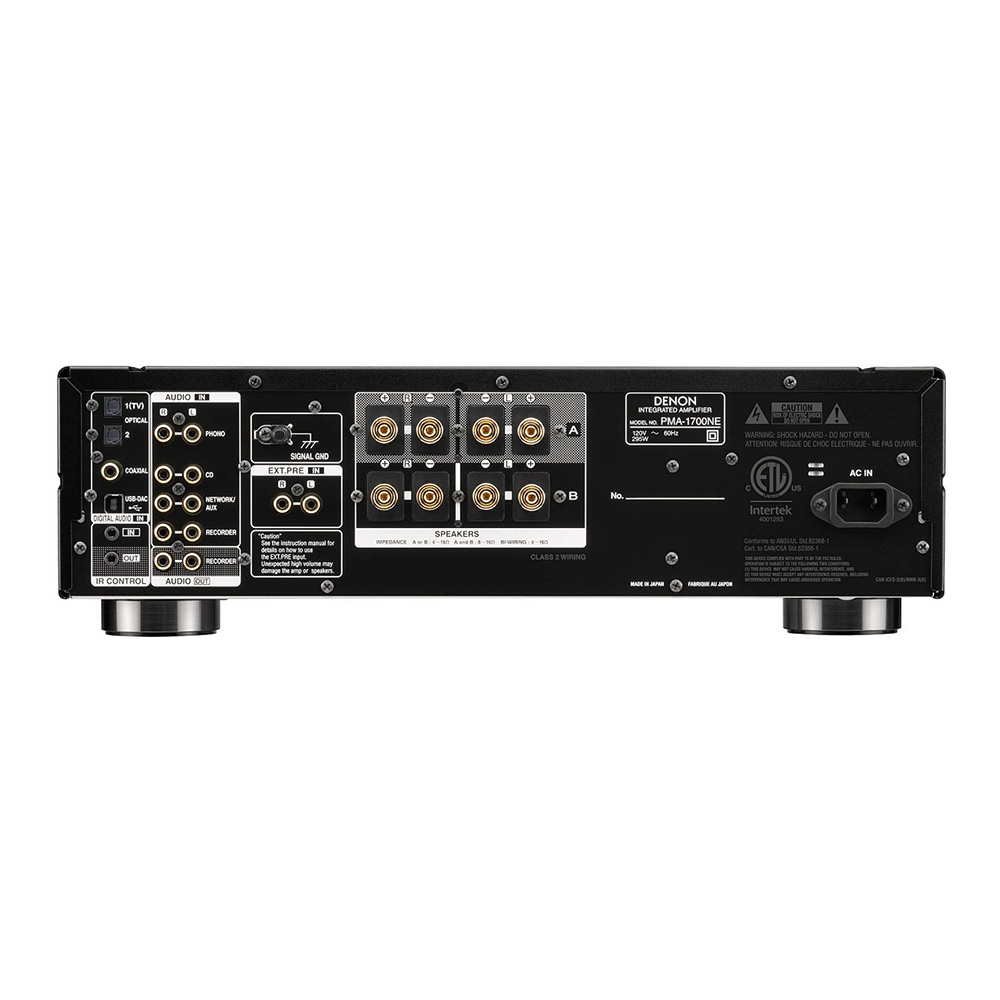 L’amplificateur intégré Denon PMA-1700NE délivre une puissance de sortie de 70 W par canal sous 8 Ohms et 140 W par canal sous 4 Ohms. Il est doté d’une alimentation avancée avec un circuit simple push-pull à niveau de courant très élevé, d’un système de traitement Advanced AL32 Processing Plus, mais aussi d’un préamplificateur phono intégré MM/MC.