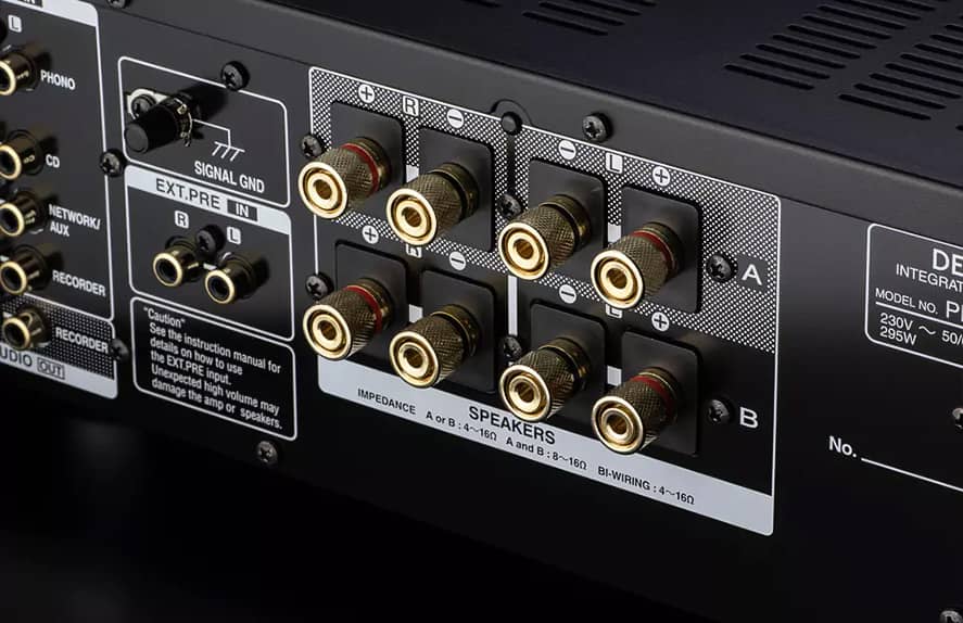 Les amateurs de vinyles seront ravis d’apprendre que ce Denon PMA-1700NE dispose aussi une entrée phono compatible MM et MC. Quant à l’entrée pré-amp, elle vous permet de connecter un préamplificateur externe et d’utiliser l’ampli intégré Denon PMA-1700NE comme un simple amplificateur.