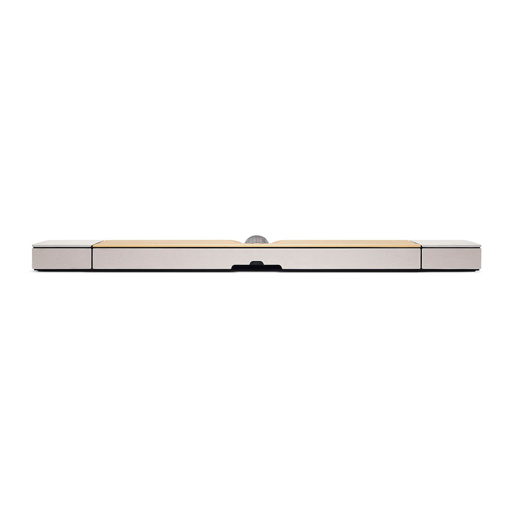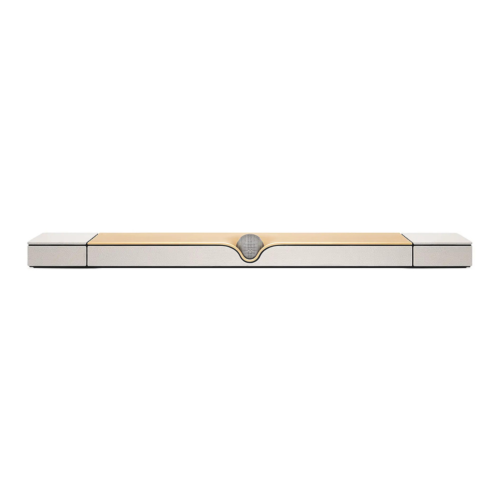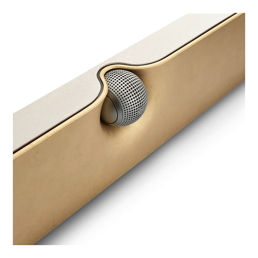 Complétant la silhouette anguleuse du Devialet Dione, l’ORB est le point central de la conception de cette barre de son, elle se compose d’une enceinte active et 2 radiateurs passifs.