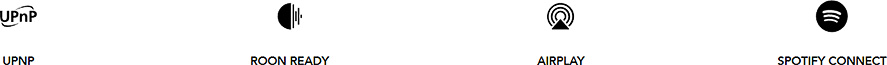Jusqu'à 24bits / 192kHz PCM (Roon Ready, UPnP, AES/EBU, Coaxial)
