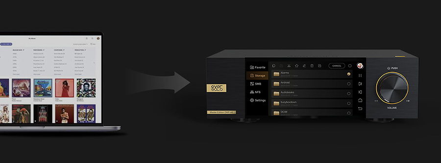 Le partage avec d’autres appareils de lecture média, ordinateurs ou appareils mobiles sur le réseau local devient une expérience fluide et intégrée, faisant de l’EverSolo DMP-A6 Master Edition une solution de stockage en réseau personnalisée.