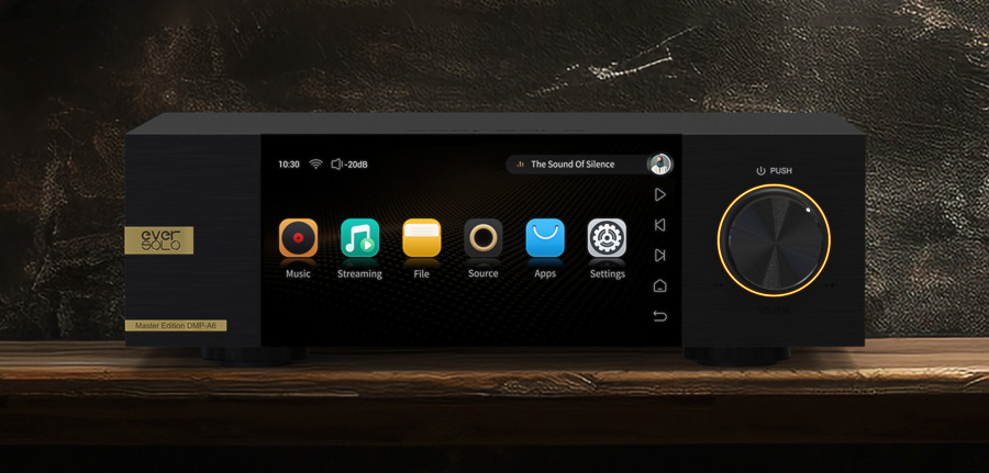 Le DMP-A6 Master Edition d’EverSolo se présente comme un lecteur réseau haut de gamme doté d’un châssis en alliage d’aluminium et d’un panneau brossé pour une esthétique soignée.