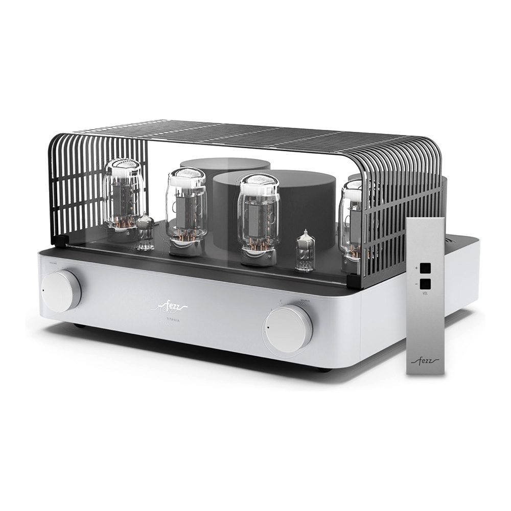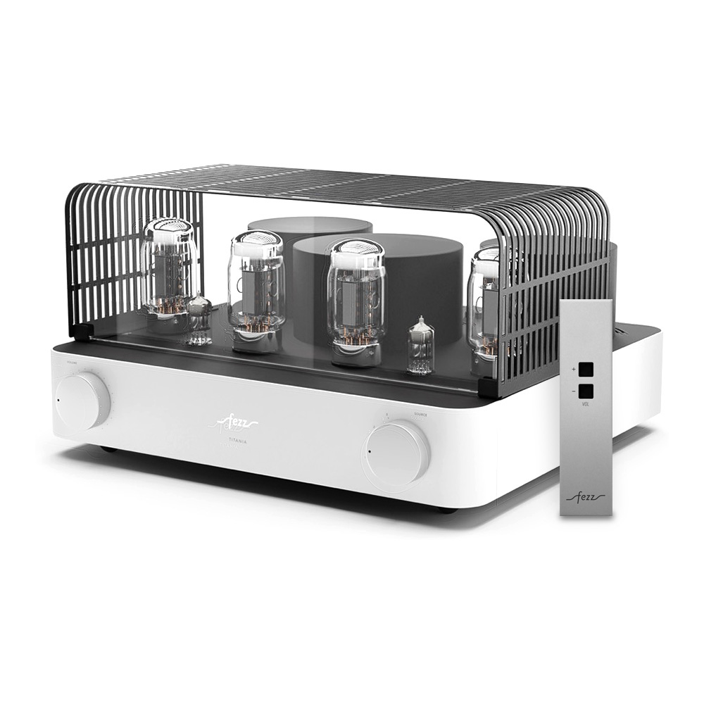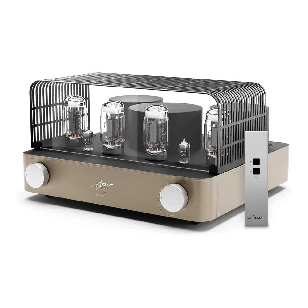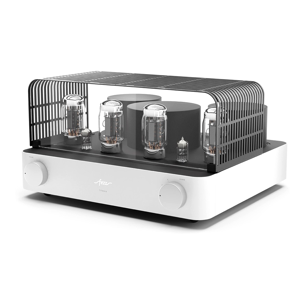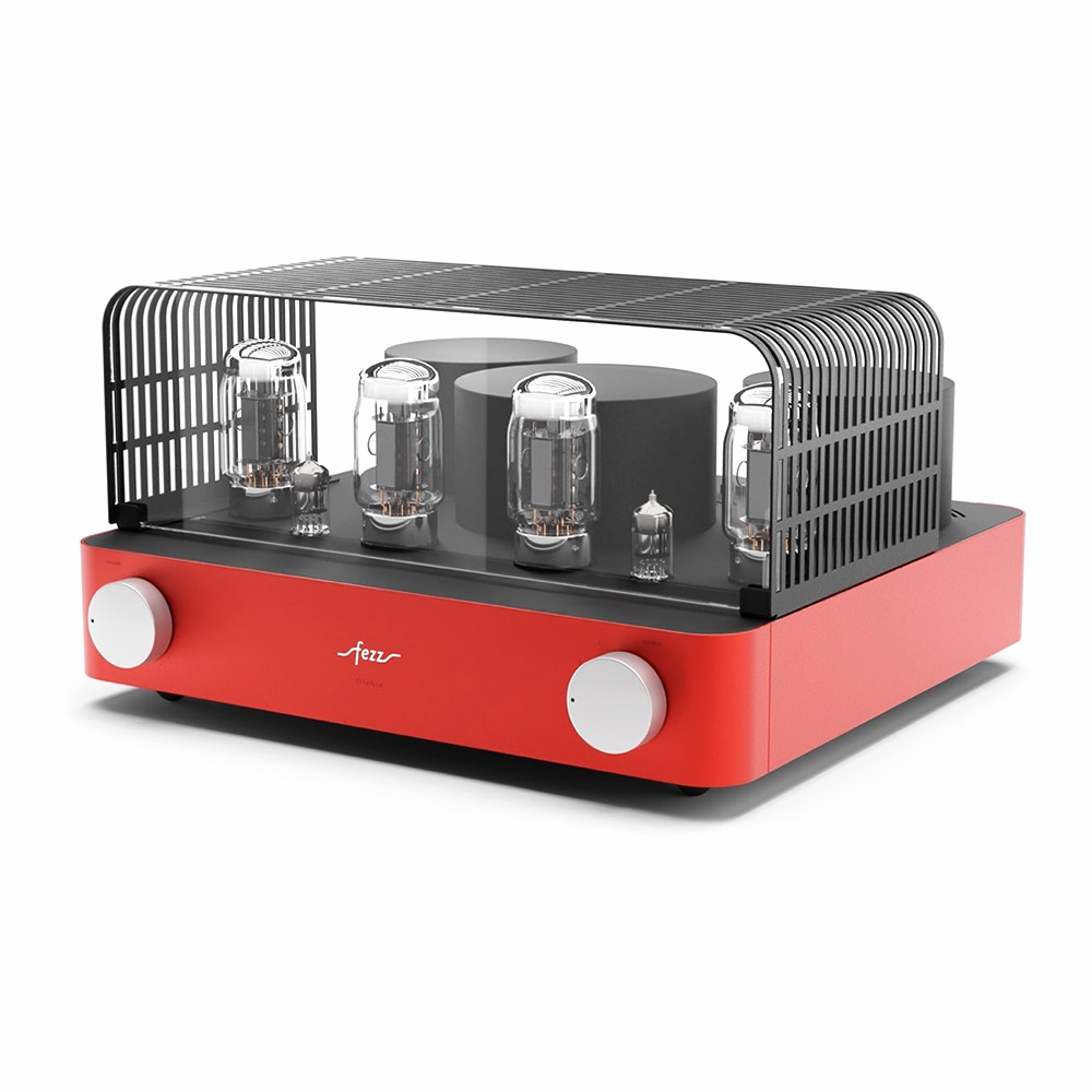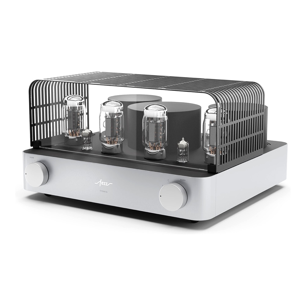 Équipé de quatre tubes KT881Les KT88 sont des tubes de puissance à vide, réputés pour leur capacité à offrir un son riche, chaleureux et détaillé. Avec une puissance de sortie élevée et une faible distorsion, ils sont prisés pour les amplificateurs haute fidélité et apportent une dynamique sonore remarquable, particulièrement dans les configurations push-pull.et deux tubes ECC832Réputés pour leur capacité à amplifier avec finesse les signaux faibles, les tubes ECC83 (également appelés 12AX7) sont des composants de préamplification de haute précision. Ils apportent une chaleur harmonique naturelle et un niveau de détail saisissant. Leur présence garantit une restitution sonore riche, dynamique et nuancée, idéale pour révéler les moindres subtilités d’un enregistrement., l’ampli intégré Fezz Titania EVO repose sur un circuit push-pull en classe AB13La classe AB1 est une variante de la classe AB, principalement utilisée dans les amplificateurs à tubes. Elle se distingue par une caractéristique essentielle : les grilles des tubes de sortie n’absorbent pas de courant pendant le fonctionnement. Cela permet une meilleure linéarité sonore et réduit les distorsions, au prix d’une puissance de sortie légèrement inférieure. Comparée à la classe AB classique, la classe AB1 privilégie donc la précision sonore à l’efficacité maximale., offrant une puissance de 2 x 45 W. Les transformateurs toriques, conçus par Toroidy.pl avec la technologie AGTC, optimisent la bande passante et réduisent les pertes énergétiques.