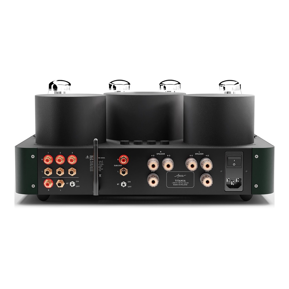 L’ampli intégré Fezz Titania EVO propose trois entrées RCA, idéales pour connecter des sources telles que des lecteurs CD, DAC ou préamplificateurs externes, assurant une polyvalence dans les choix de sources. Une sortie subwoofer dédiée (disponible en option) enrichit les basses fréquences, parfaite pour des systèmes nécessitant un soutien dans le bas du spectre.