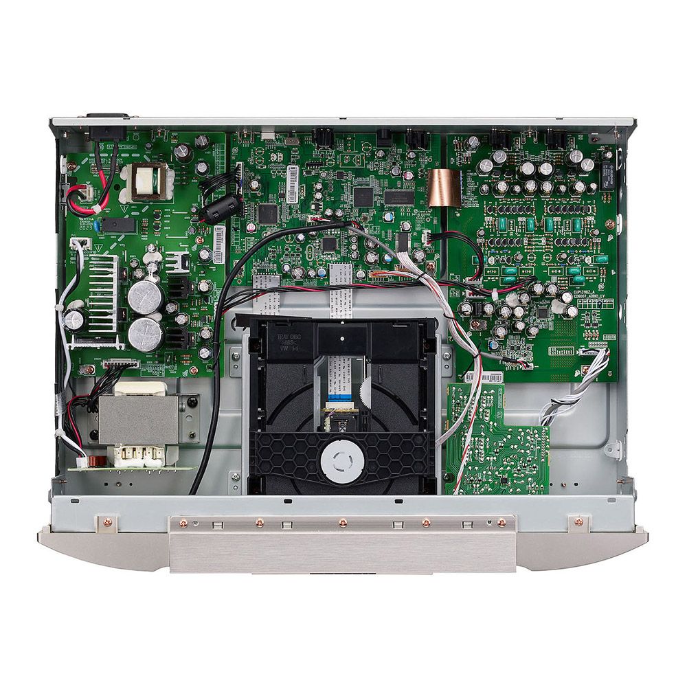Les pieds rigides suppriment les vibrations indésirables tandis que l’alimentation électrique surdimensionnée à faible bruit alimente les circuits numériques et analogiques du lecteur.