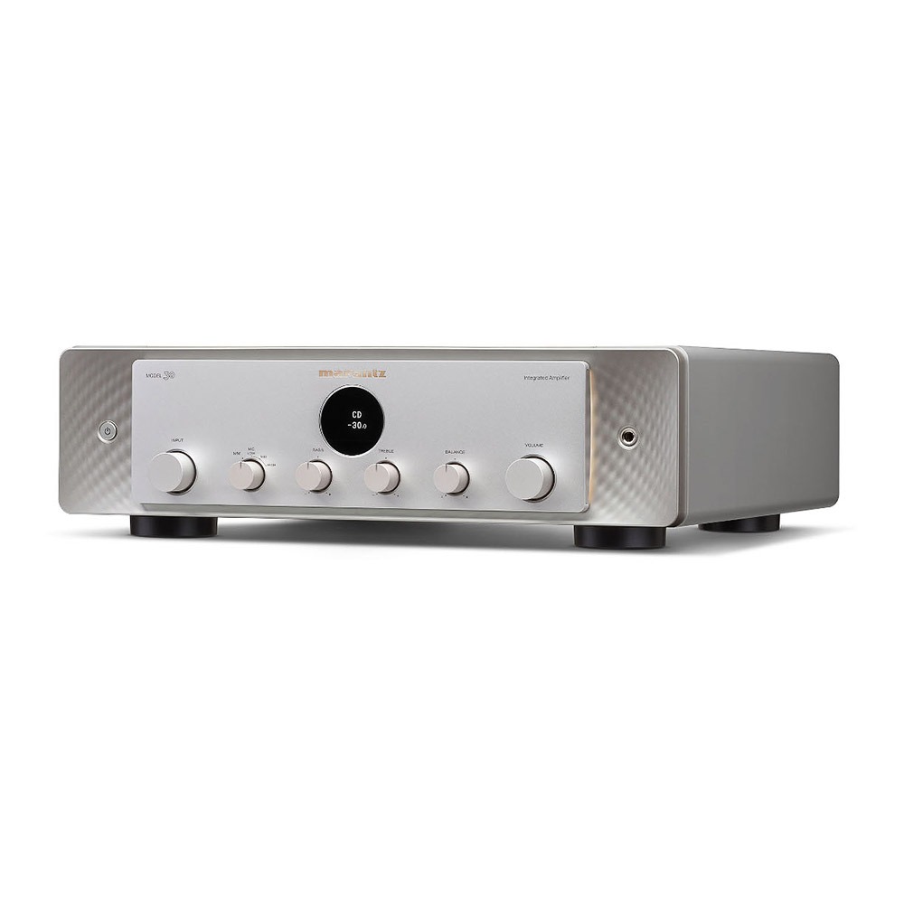 Le Model 30 est un nouvel amplificateur intégré de la nouvelle gamme Premium Marantz. Sa conception et son inspiration sont issues des plus belles réalisations de la marque. Ce Model 30 inaugure le nouveau design, moderne et intemporel. Son élaboration sans compromis en font un intégré intégralement dédié à la qualité de reproduction stéréo analogique. Celle-ci est notamment le résultat du concept d’amplification en deux blocs séparés, le préamplificateur ayant son propre transformateur toroïdal blindé. La puissance de 2x100w rms 8Ohms ainsi que la conception de son circuit d’amplification permettent au Model 30 l’association à des enceintes sérieuses en garantissant l’équilibre, la tenue de celles-ci. Marantz utilise ses propres modules d’amplification HDAM SA3 Marantz (module d’amplification hyper-dynamique).
