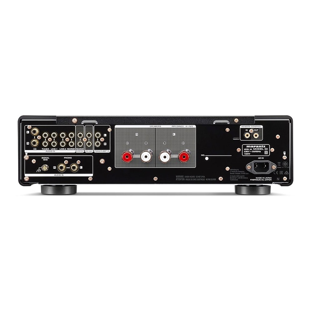 Basés sur des entrées analogiques RCA, Il s’équipe de bornes d’entrées indépendantes à faible résistance usinées en laiton pour le CD et le phono. Les borniers d’enceintes sont en cuivre de qualité d’origine Marantz. Une possibilité intéressante est qu’il peut parfaitement s’associer à un ampli home-cinéma disposant d’une sortie » main out « . Cela vous permettrait de l’exploiter en permanence avec vos enceintes principales gauche/droite aussi bien en stéréo qu’en multicanal sans compromis. Une sortie RCA variable permet son utilisation en pré-amplificateur associé à un ampli de puissance.