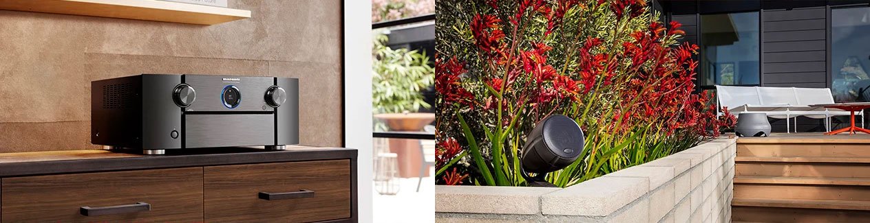 Profitez d’un son surround 7.1 avec votre home cinéma et diffusez simultanément un son stéréo provenant de la même source ou d’une autre source dans une pièce séparée. Il suffit de connecter une paire de haut-parleurs aux sorties amplifiées multi-room ou de brancher un amplificateur stéréo supplémentaire et des haut-parleurs aux pré-sorties de la zone 2.