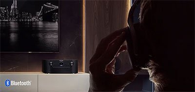 Regardez le dernier film ou écoutez de la musique sans réveiller la maison. Écoutez le son avec des écouteurs connectés via Bluetooth sans fil et les enceintes principales éteintes, pour ne pas déranger votre entourage. Le Marantz SR-8015 vous permet également de lire le son simultanément sur les deux, écouteurs Bluetooth et les enceintes. Si un membre de votre famille ou un ami est malentendant, c’est une excellente option pour profiter d’un film ensemble sans augmenter le volume global.