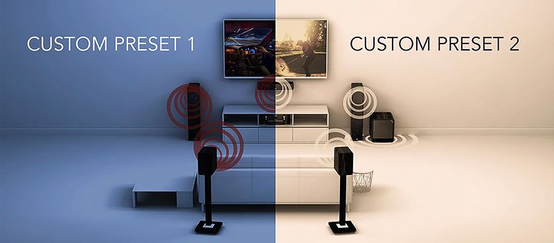 Le nouveau Marantz SR-8015 enregistre deux réglages Audyssey et passe d’un réglage à l’autre à la volée, vous donnant ainsi la liberté de régler votre expérience d’écoute en fonction du contenu ou de l’environnement d’écoute.