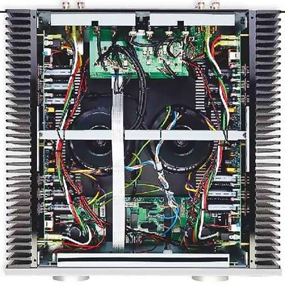 La conception du Musical Fidelity M8xi est un préampli séparé avec deux amplis de puissance monoblocs partageant un châssis commun. Chacun a son propre dissipateur thermique et son propre transformateur. Le préampli possède une alimentation séparée et il se place à proximité des prises d’entrée. Par conséquent, les pistes PCB sont très courtes. Ce schéma garantit que les signaux des deux canaux conservent une impédance ultra basse au moment où ils entrent dans l’amplificateur. Chaque canal comprend douze transistors bipolaires. Ce Musical Fidelity M8xi a remporté le prix EISA 2020 pour le meilleur amplificateur intégré haut de gamme.