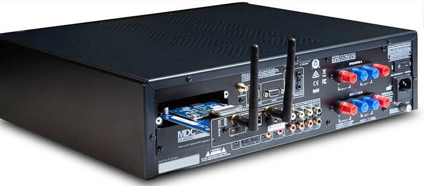 Muni de Wi-Fi et d’Ethernet, le module optionnel MDC2 BluOS-D offre la possibilité d’écouter de la musique depuis vos services de streaming favoris en utilisant l’application renommée BluOS Controller pour Android, iOS, macOS et Windows.