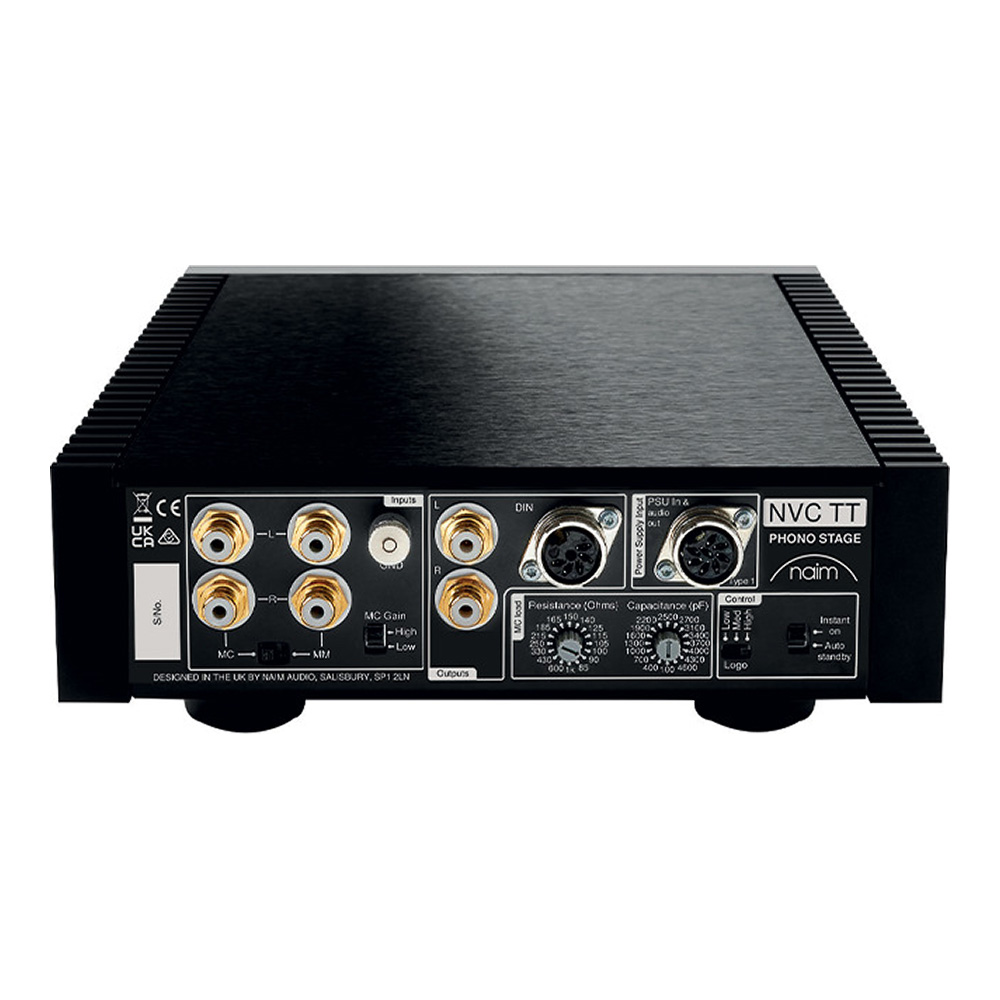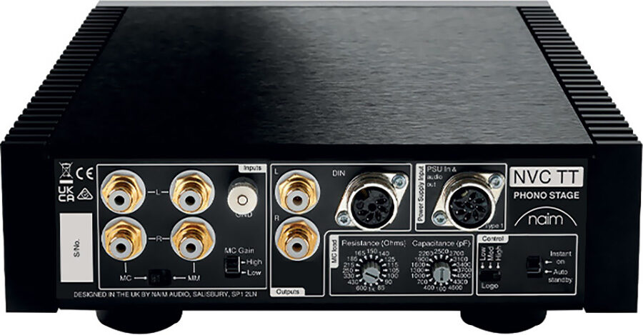 Le Naim NVC TT offre une connectique complète et polyvalente. Les entrées pour cellules à aimant mobile (MM) et cellules à bobine mobile (MC), permettant une intégration avec la majorité des platines vinyles. Le réglage de gain MC est commutable entre ‘High’ et ‘Low’, offrant une adaptabilité selon la cellule utilisée.