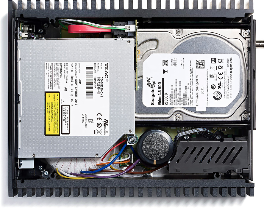 Câble secteur, chiffon de nettoyage, vis pour plateau de chargement, connecteur BNC-phono et guide de démarrage rapide. Note : vendu sans disque dur interne mais avec un plateau amovible dans lequel un dispositif HDD ou SSD peut être installé