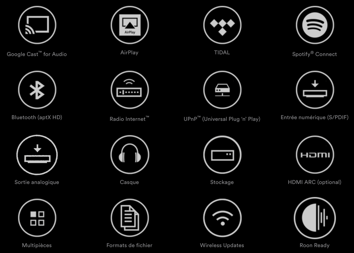 Les nouveaux lecteurs tout-en-un Uniti intègrent les dernières technologies en matière de Wi-Fi. Le processeur Wi-Fi de qualité supérieure prend en charge 2,4 et 5 GHz, avec une mémoire et une mémoire tampon internes sensiblement améliorées : le lecteur Uniti Atom est capable de stocker jusqu’à cinq minutes de données, ce qui réduit fortement le risque d’arrêt de la diffusion audio. Les antennes Wi-Fi (une de chaque côté du produit pour une portée optimale) sont intégrées derrière une fente créée dans le dissipateur thermique. Ce système en instance de brevet assure une connectivité robuste, sans antenne externe.