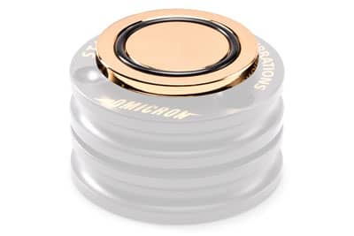 Le palet presseur Omicron Turntable Clamp est conçu en polymère Delrin1Le Delrin® est un thermoplastique à base de polyoxyméthylène (POM)., un matériau reconnu pour ses excellentes propriétés mécaniques. Placé sur votre disque vinyle, il améliore la précision de la tête de lecture et la restitution du disque, permettant ainsi une reproduction sonore plus précise et dynamique.