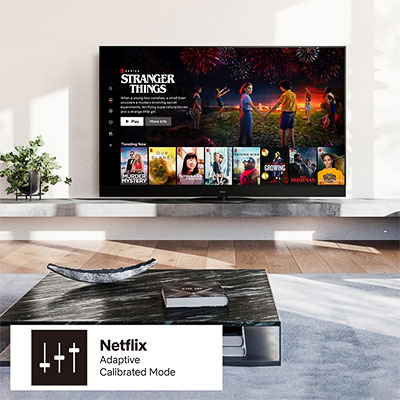 Les productions Netflix, qu’il s’agisse de films ou de séries, respectent des critères de qualité stricts, assurant un rendu exceptionnel sur les grands écrans. Grâce au mode calibré Netflix Adaptive, votre téléviseur est capable d’optimiser la diffusion des programmes Netflix.