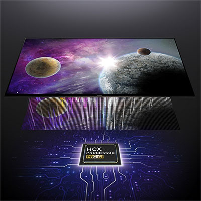 Au cœur de la TX-55MZ1500E se trouve le processeur HCX Pro AI. Ce processeur intelligent analyse le contenu image par image et ajuste la qualité d’image en conséquence.