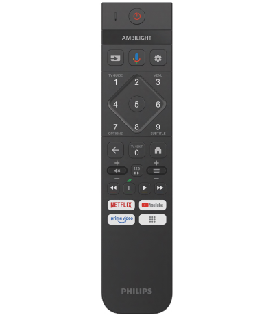 La commande à distance se charge via un usb-c ( câble fourni ), simple et conviviale, elle permet notament la gestion directe de l’Ambiligth et l’accès directe à certaines applications de streaming vidéo. Un micro est incorporé afin que vous puissiez piloter certaines fonctions à la voie.