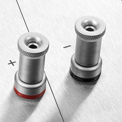 PMC conçoit et fabrique leurs propres borniers avec du rhodium mat pour la meilleure conductivité possible. Ils sont directement couplés au filtre pour garder le trajet du signal aussi court que possible.