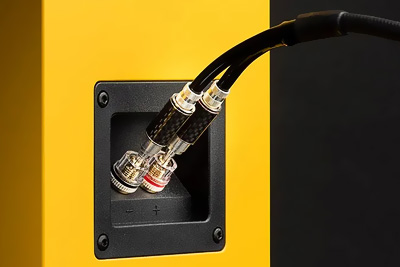 Les Speaker Box 5 S2 disposent de borniers de connexion plaqués or qui garantissent une transmission du signal sans perte ni interférence.
