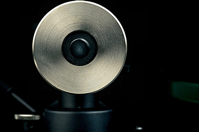 Le contrepoids nickelé de la Pro-Ject T2 W, bien plus qu’un détail esthétique, est essentiel à la précision de la lecture vinyle.