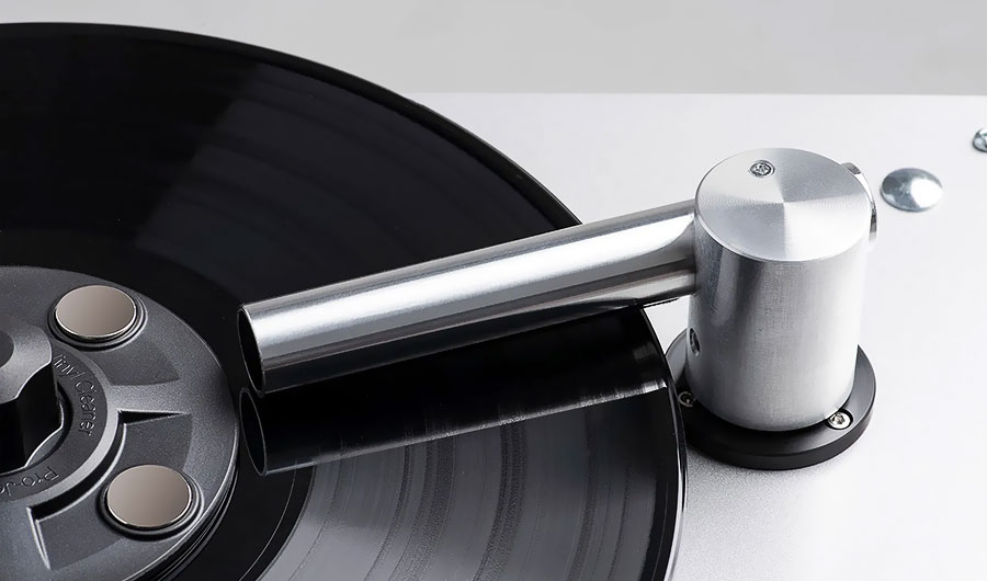 Avec le Pro-Ject VC-E2, préparez d’abord votre vinyle en utilisant la brosse fournie pour éliminer la poussière et les particules superficielles. Une fois cette étape initiale accomplie, le nouveau clamp magnétique protecteur facilite grandement le reste du processus.