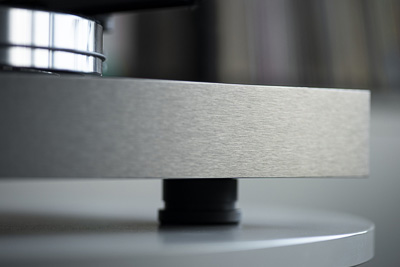 Le plateau en aluminium de 5,1 kg de la Pro-Ject X8 Special est renforcé par un aimant en néodyme, soulageant ainsi la pression sur le palier.