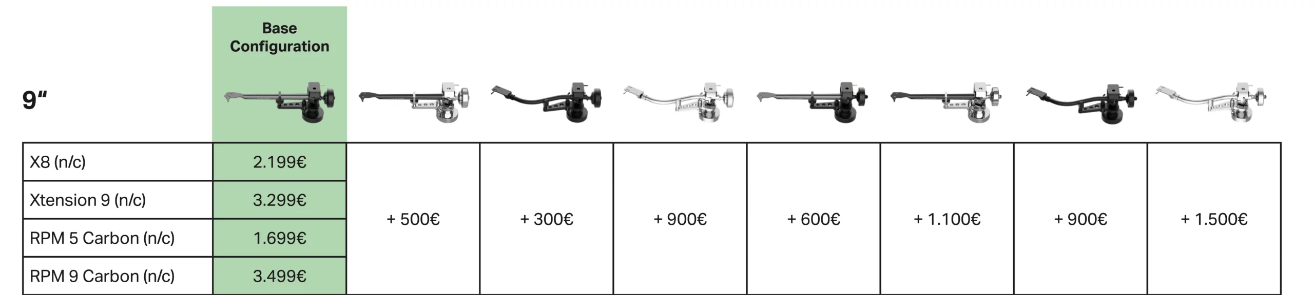 Ici, la platine reprend un bras 9 » EVO de dernière génération comprenant de nombreuses évolutions. Il est à noter que Pro-ject propose son Xtension 9 à la carte, vous pouvez choisir entre 8 bras différents.