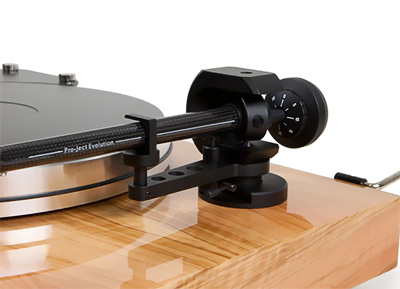 La platine est équipée d’un bras de lecture en fibre de carbone de 9 pouces de la série Evolution, offrant une rigidité optimale et une réduction des résonances indésirables. Le bras est également équipé d’un contrepoids réglable et d’un système antiskating magnétique, permettant un réglage précis pour une lecture optimale des sillons.