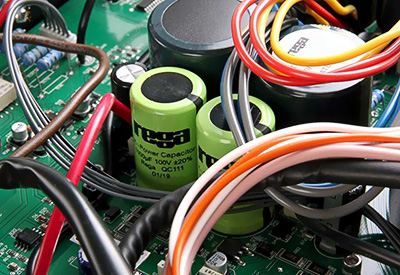Des condensateurs de filtrage Rega K-Power QC111 de 1000 μF sont associés à ce transformateur, garantissant une alimentation parfaitement linéaire et une très grande réserve de courant.