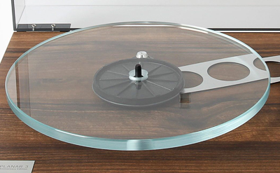 La Rega Planar 3 50th Anniversary se distingue par son plateau en verre flotté opti-white poli de 12 mm.
