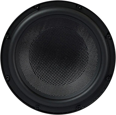 10 pouces (250 mm), longue excursion, cône CarbonGlas™, cache-poussière en fibre de carbone inversé, châssis en acier