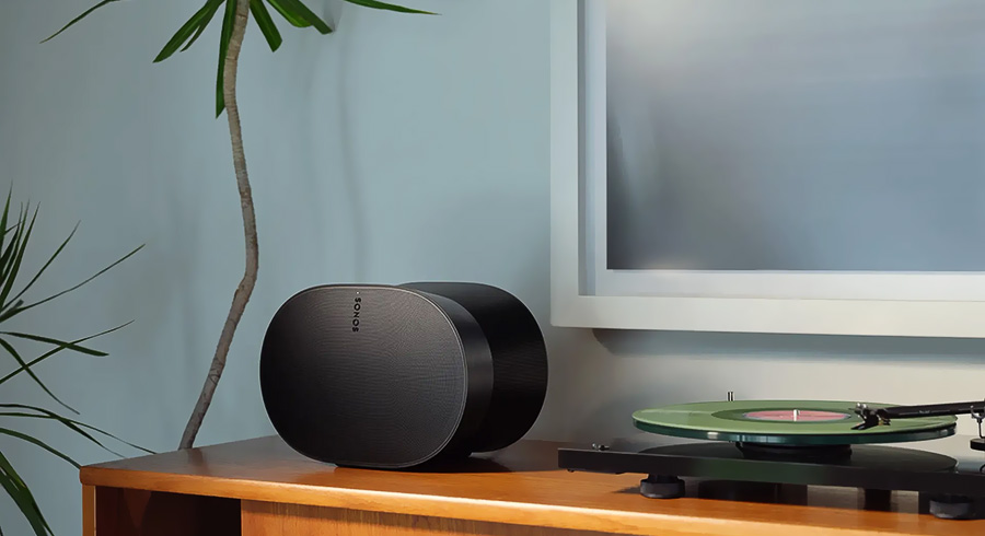 La Sonos Era 300, avec son design en sablier offre une dispersion sonore optimisée.