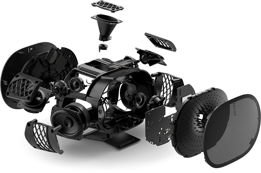La conception acoustique de la Sonos Era 300 est un véritable chef-d’œuvre. Elle intègre deux haut-parleurs médium/grave et quatre tweeters, tous alimentés par six amplificateurs de classe D.