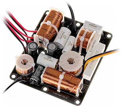 Le crossover IFF des Sonus faber Lumina V Amator assure une cohérence acoustique entre les trois voies grâce à une calibration précise des fréquences de coupure et à l’emploi de composants avancés.