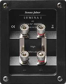 La structure en bois multicouche de la façade avant et le placage de bois véritable sont disponibles dans plusieurs finitions telles que le noyer ou le wengé, la troisième option étant le noir piano. Toutes les autres surfaces du caisson sont recouvertes à la main de cuir noir. Les enceintes de la collection Lumina disposent également de deux paires de bornes nickelées pour une connexion bi-câblage ou bi-amplification. Le filtres exploite des condensateurs hautes qualités spécialement conçus par Sonus Faber.