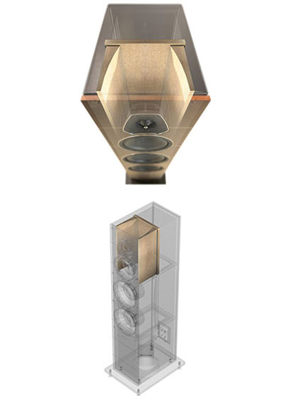 Les woofers récemment développés de 165mm s’articulent autour d’une membrane en sandwich composée de deux éléments en pulpe de cellulose séparés par une mousse spécialement étudiée. Ils sont couplés à un port bass-reflex orienté vers le sol, cette intégration réduit l’influence du mur arrière et facilitera le placement de l’enceinte.