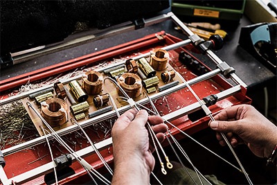 Tout comme les côtés de l’enceinte, le déflecteur avant et le dessus sont en bois naturel noyer ou wengé fini à la main, dans une plaque en aluminium moulé sous pression. Leurs designers ont souhaité rendre hommage au matériau le plus représentatif de Sonus faber, ce qui en fait encore plus un porte-étendard.